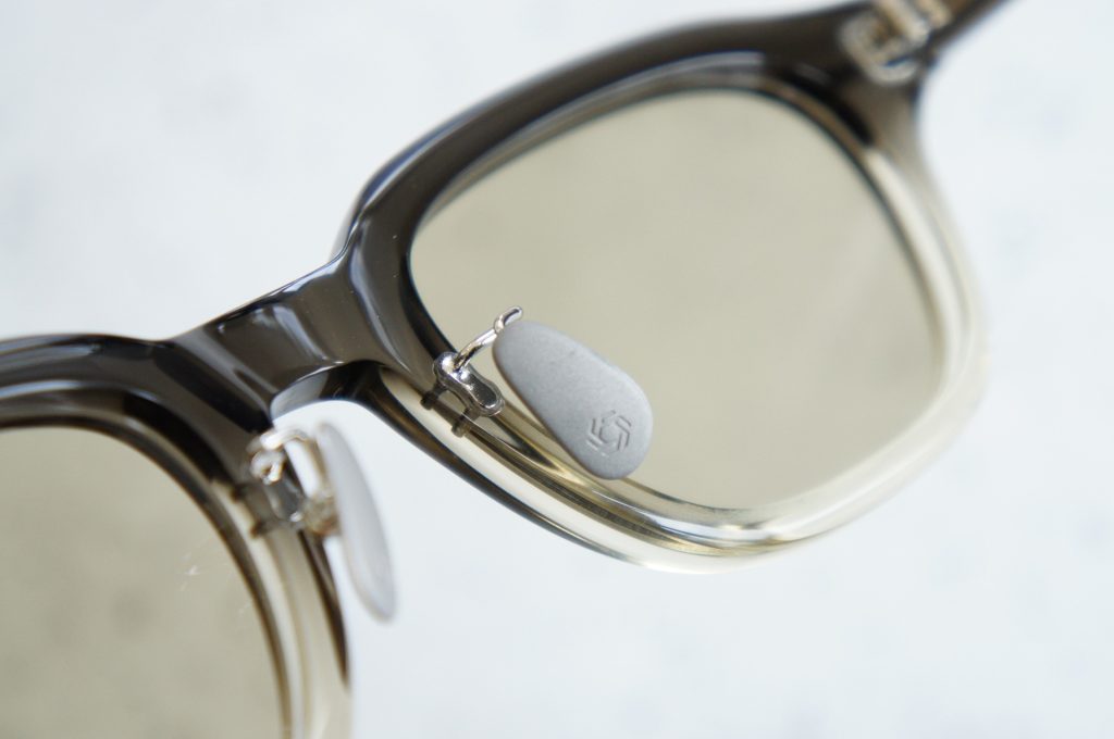 テンプルは、ヨロイ側からテンプルエンドにかけて厚みに変化を持たせた設計。