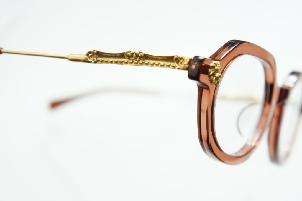 また、存在感のあるフロントに対し、テンプル(ツル)は「アンティークの扉枠」をイメージしたスッキリと細身なラインに。