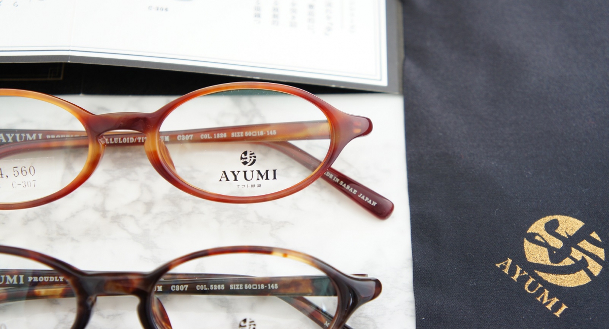 歩(アユミ)は鯖江で職人の手で1枚1枚セルロイドを丁寧に削りだし、細部にまでヤスリ掛けを行って作られる眼鏡。アユミ1本1本から職人のプライドが感じられます。