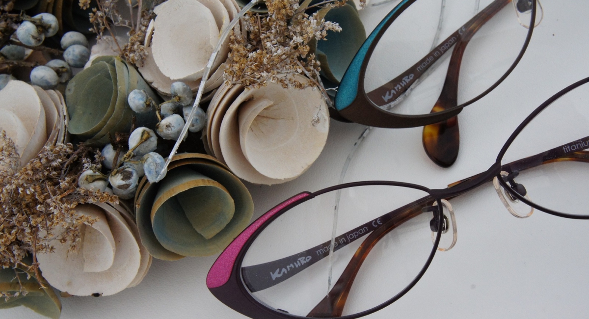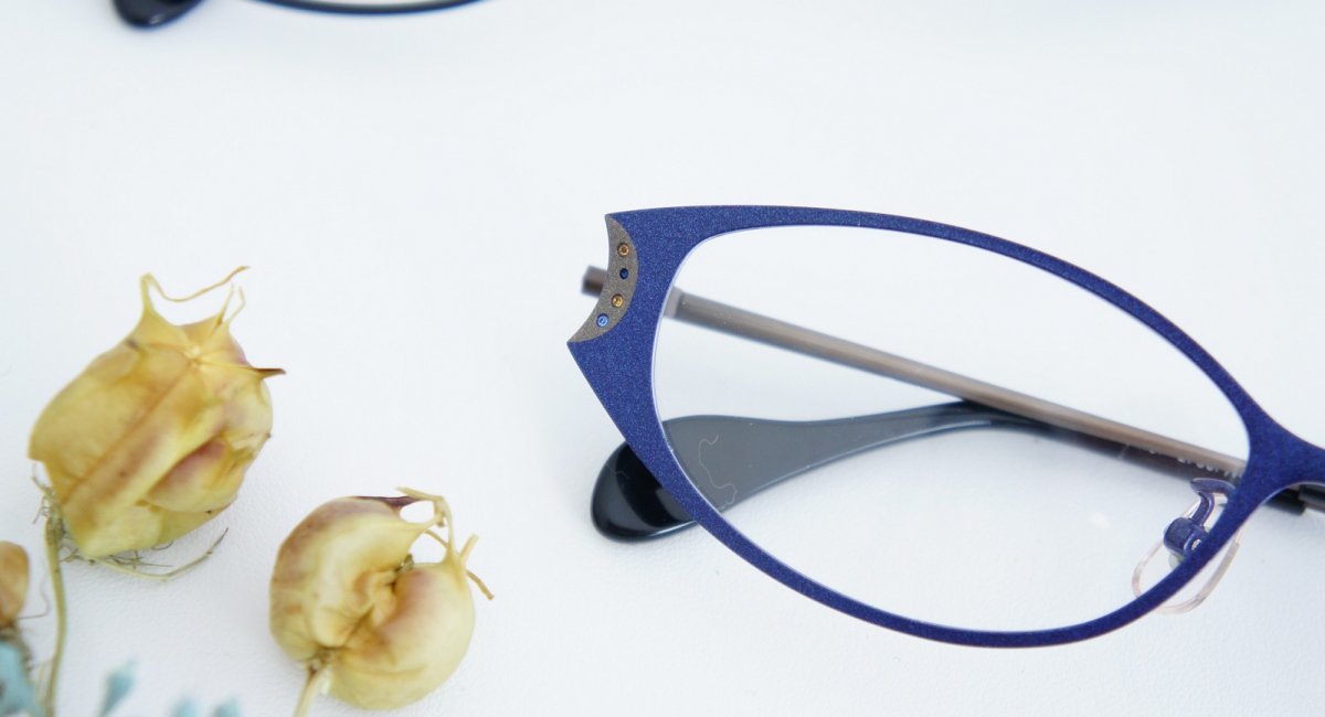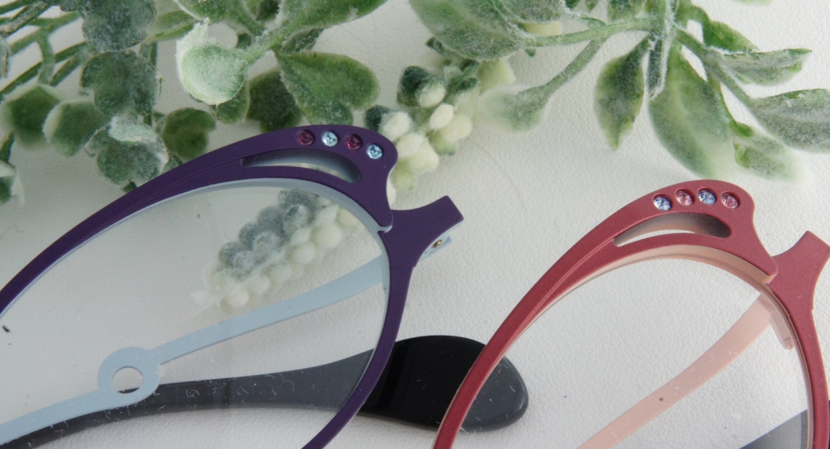 アジア人の顔の骨格に合わせたサイジング、顔の作りにナチュラルに重なるレンズシェイプを基調に、まるでアクセサリーのような植物モチーフやカラフルな模様の他、ラインストーンや疑似七宝と呼ばれるカラフルな樹脂があしらわれ、横顔の印象を明るく引き立たせてくれます。
